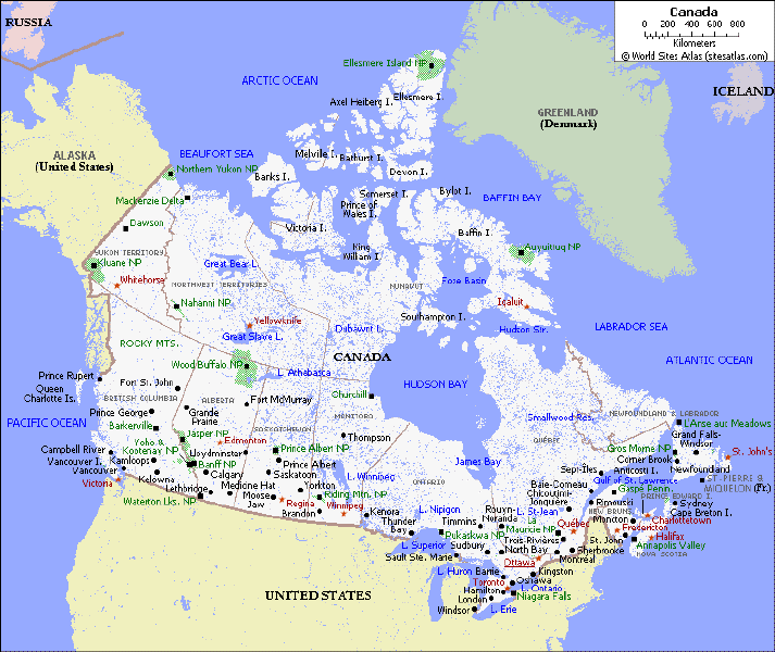 Full country name: Canada Area: 9,976,000 sq km (3.9 million sq mi) Population: 31,280,000 Capital city: Ottawa (pop: 1,010,500) People: British descent (28%), French descent (23%), Italian descent (3%), aboriginal peoples (2%), plus significant minorities of German, Ukrainian, Dutch, Greek, Polish and Chinese descent Languages: English, French and 53 native languages Religion: Catholic (45%), Protestant (36%) and minorities from most of the world's major religions Government: Parliamentary democracy Prime Minister: Jean Chrétien Governor-General: Adrienne Clarkson GDP: US$774 billion GDP per head: US$25,000 Annual growth: 3% Inflation: 3% Major products/industries: processed and unprocessed minerals, food products, wood and paper products, transportation equipment, chemicals, fish products, petroleum and natural gas Major trading partners: USA, Japan, EU (UK, Germany, Netherlands), China and South Korea